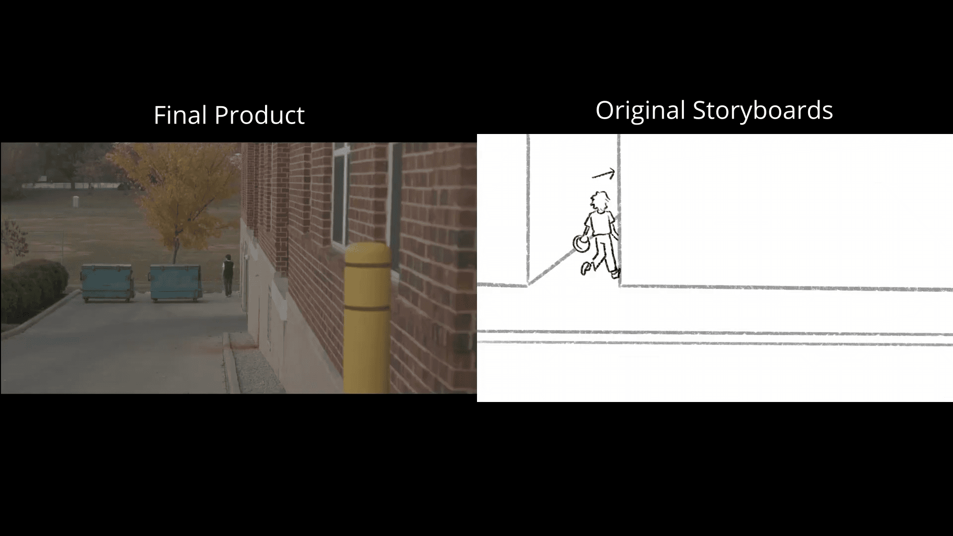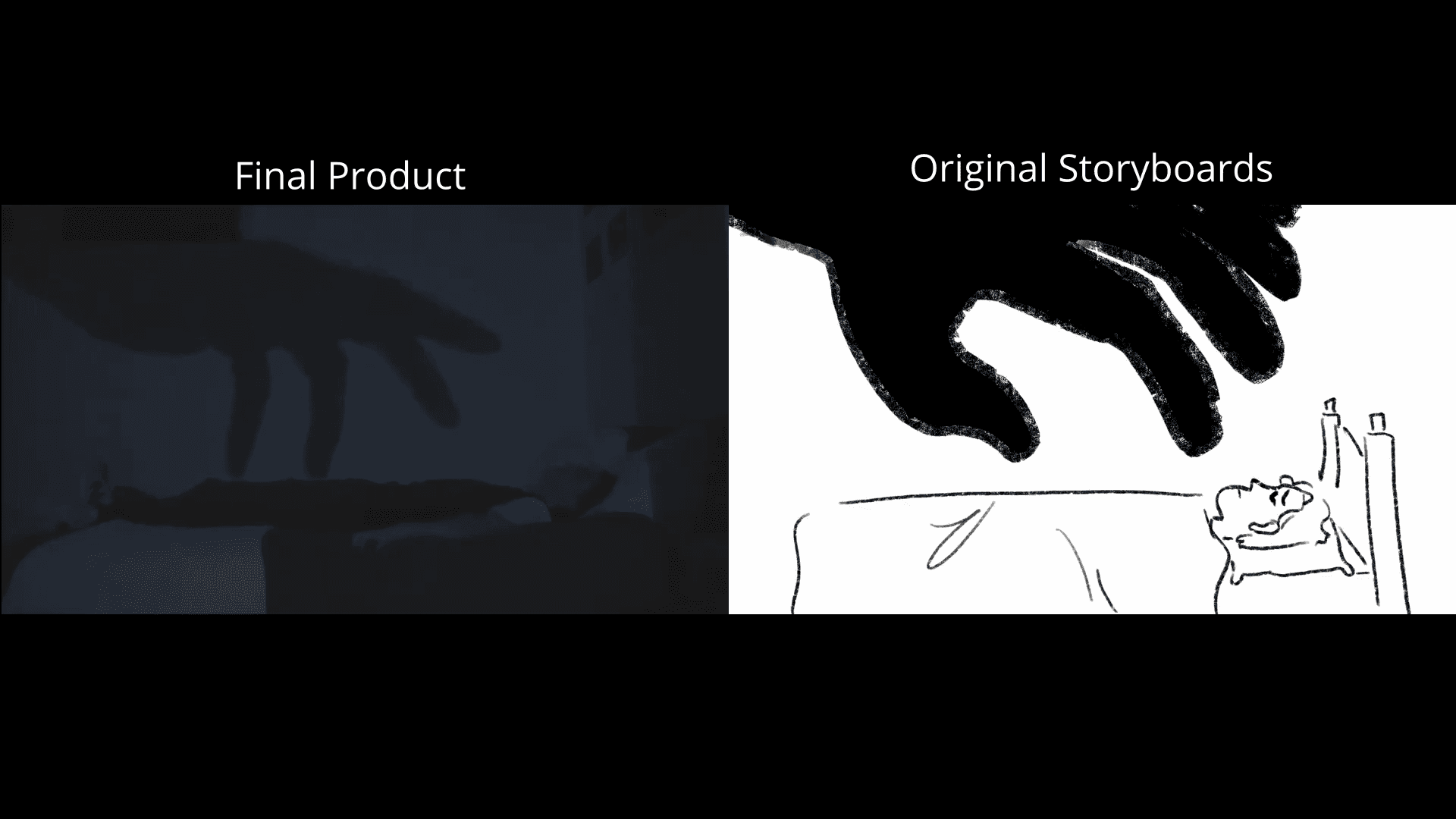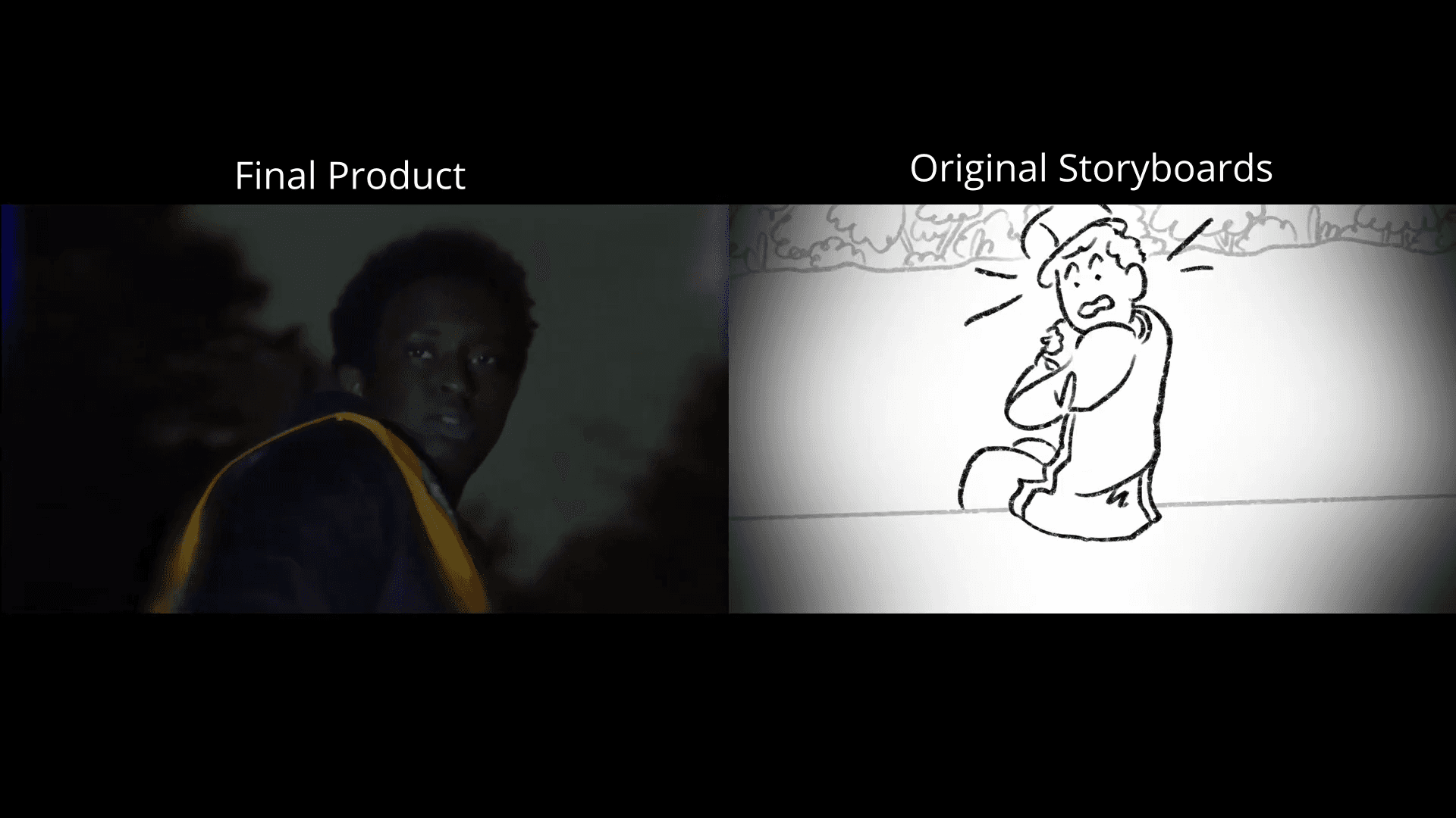 Challenged to create a film in four weeks, this showcases a side-by-side of storyboards versus the final film.