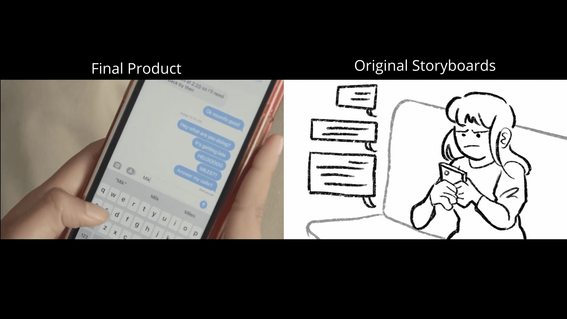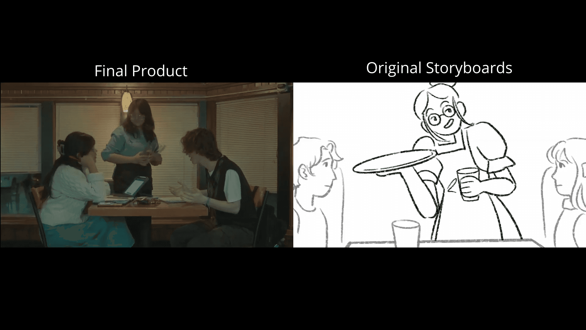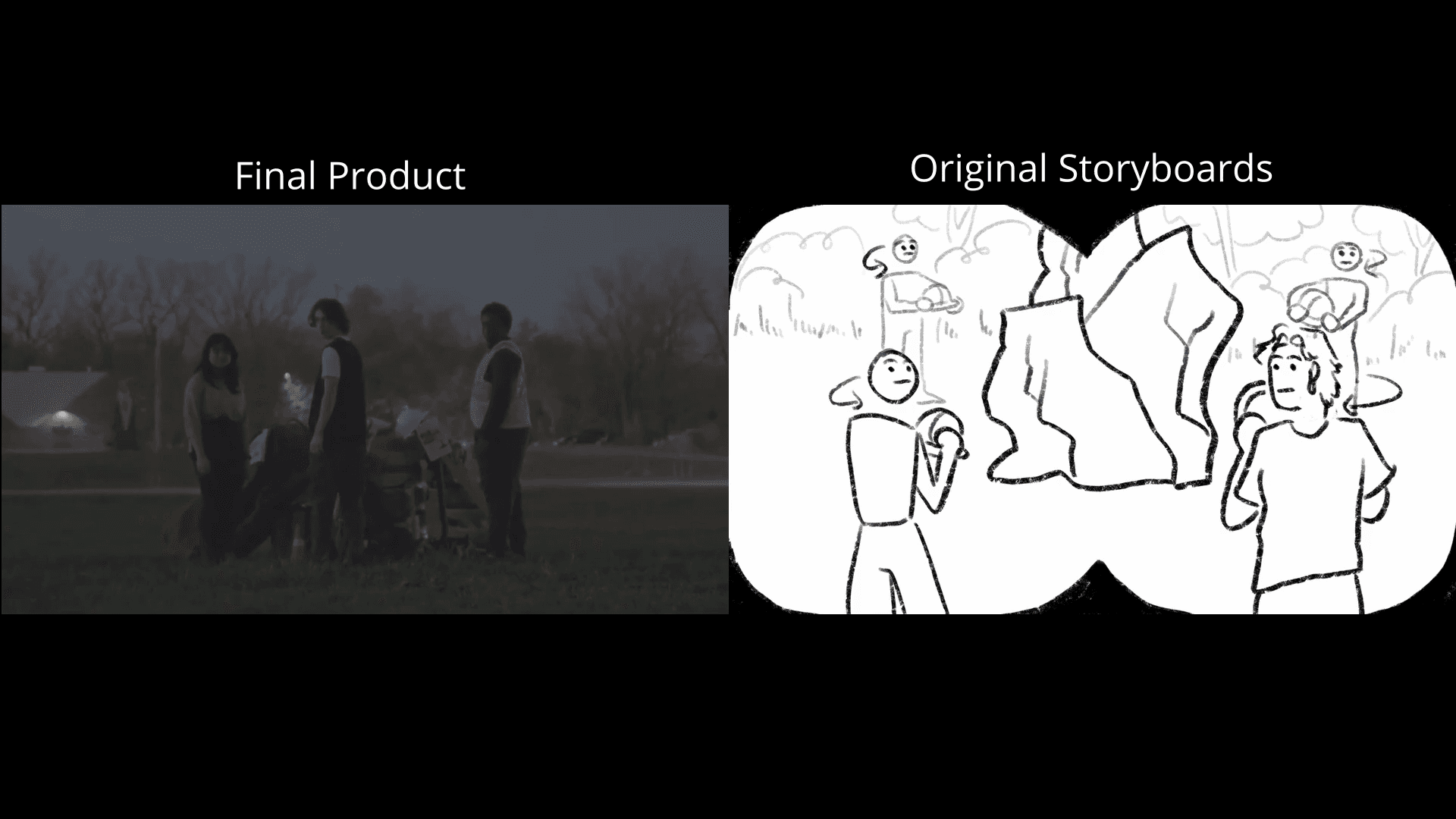 Challenged to create a film in four weeks, this showcases a side-by-side of storyboards versus the final film.