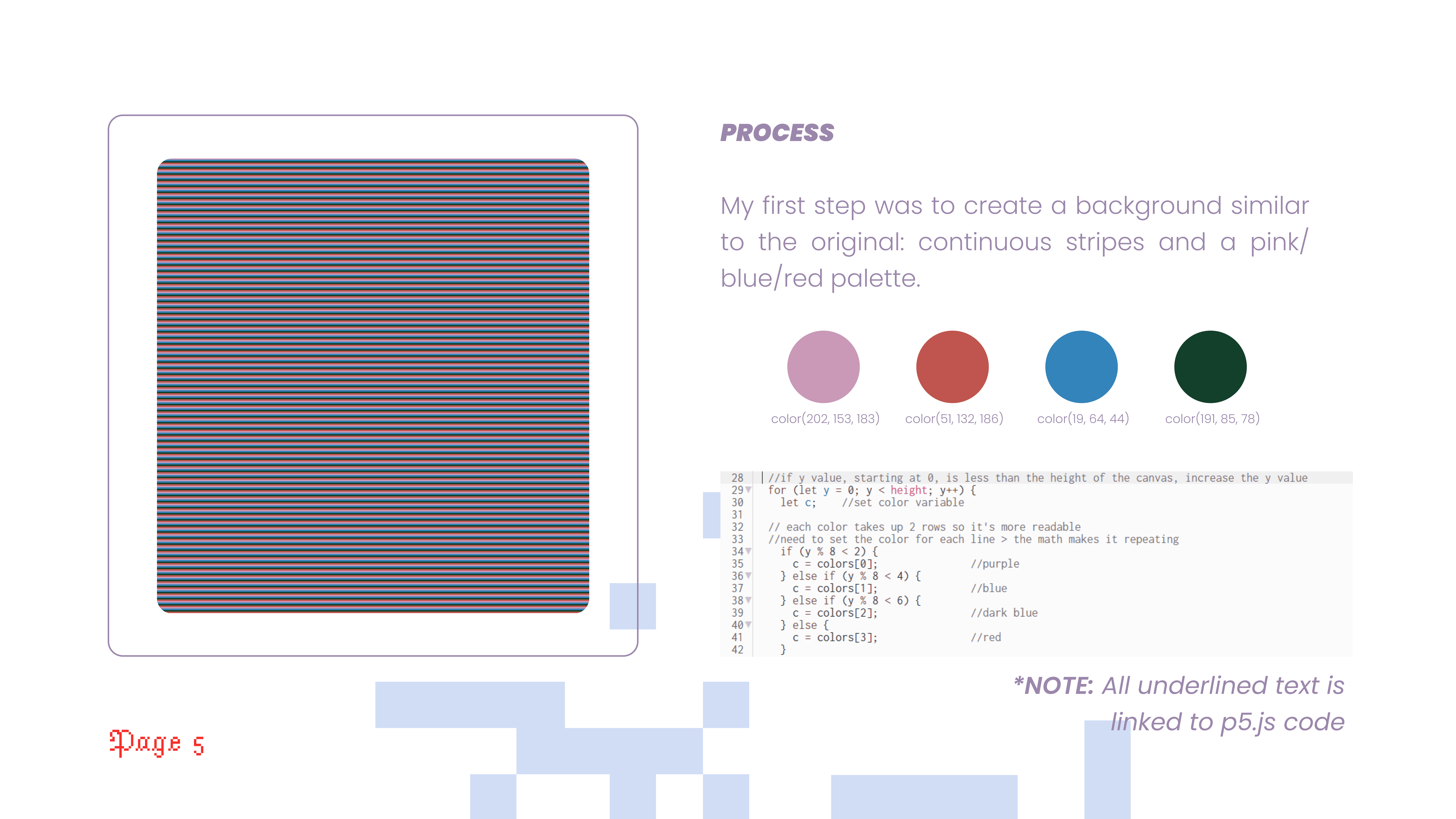 Take an existing piece of digital artwork and first attempt to recreate it in p5.js. Then, add interaction and make it your own.