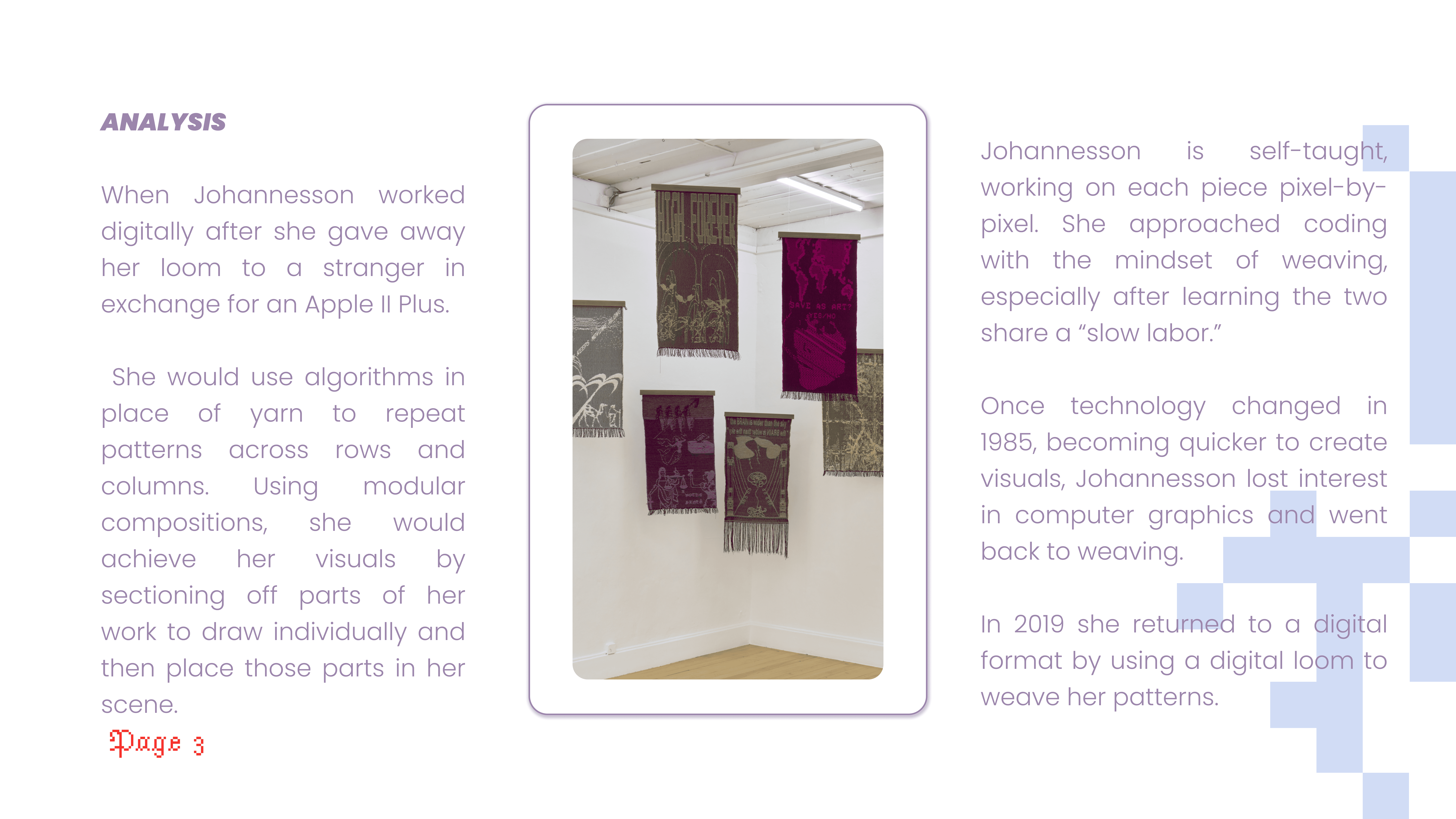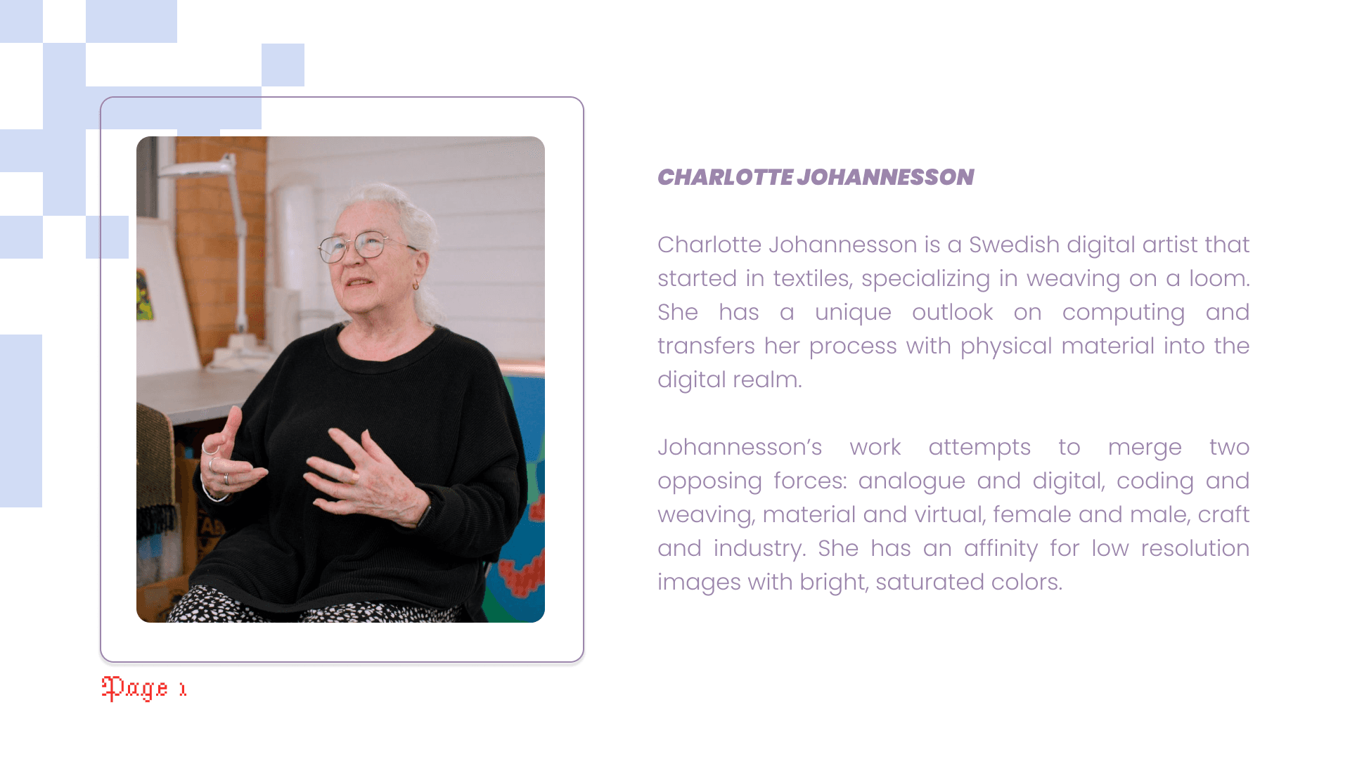 I choose a work by Swedish digital artist Charlotte Johannesson.