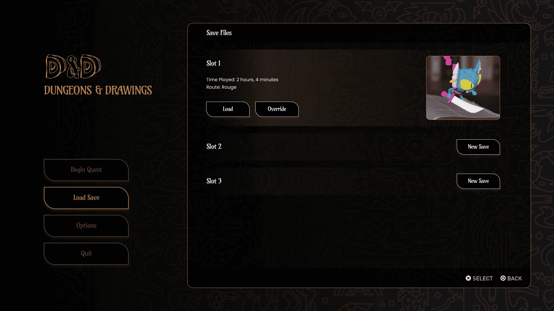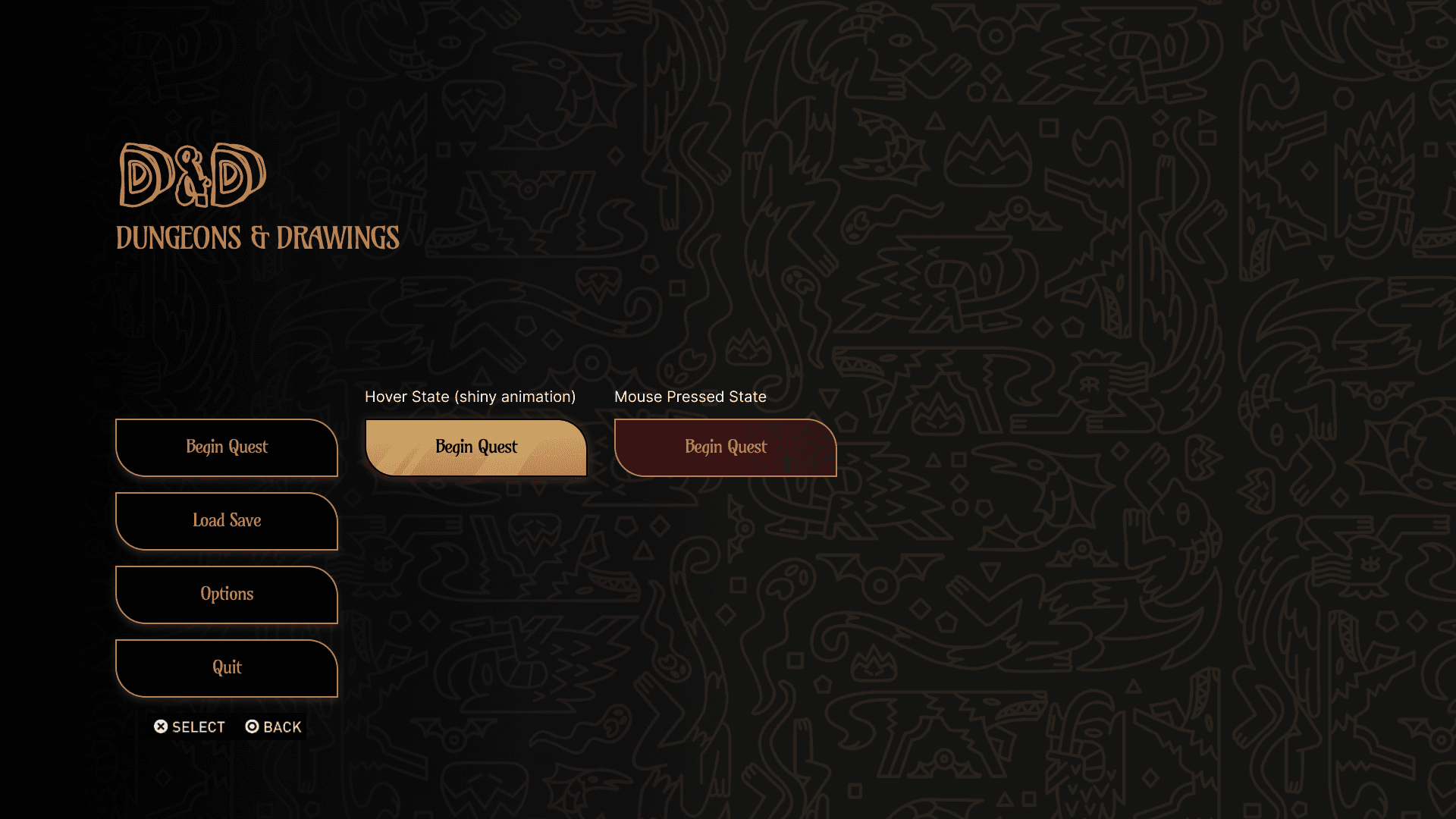 I decided to use the visual themes of my Dungeons and Drawings AR application as a way to transfer a mobile design over to PC, explore how I could improve a previous project, and lessen the pressure of having to come up with a completely new game to make a menu for.