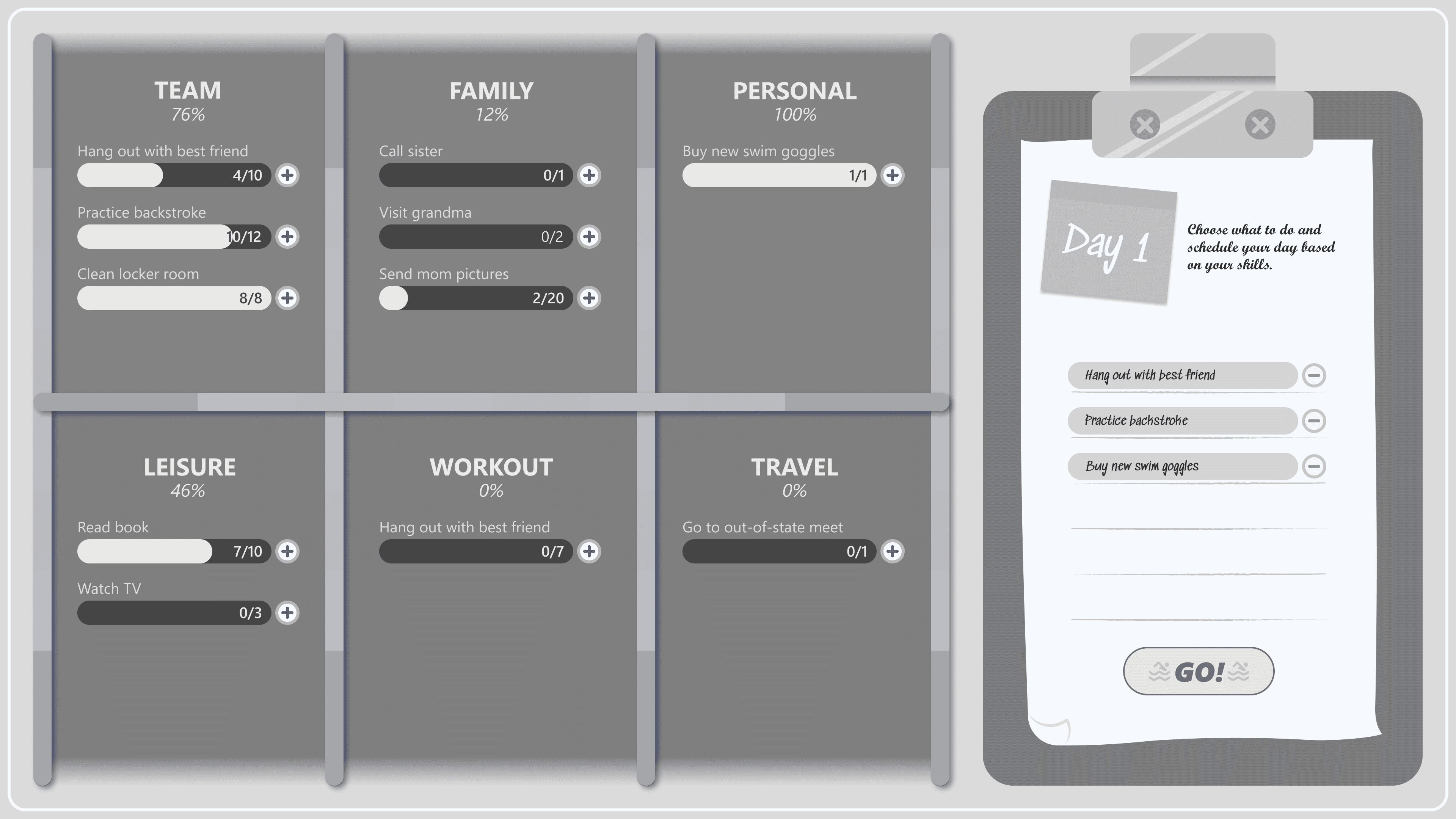 The game requires players to choose dialogue and pick what to do each day to prepare from a predetermined list of options.