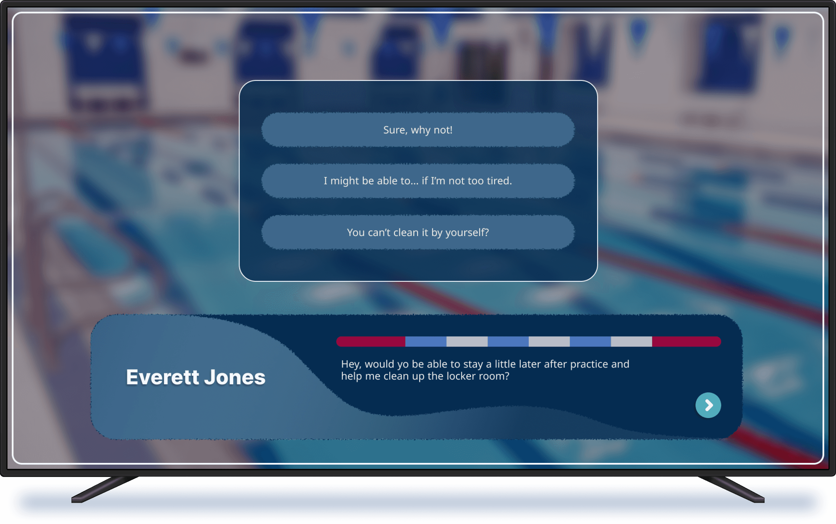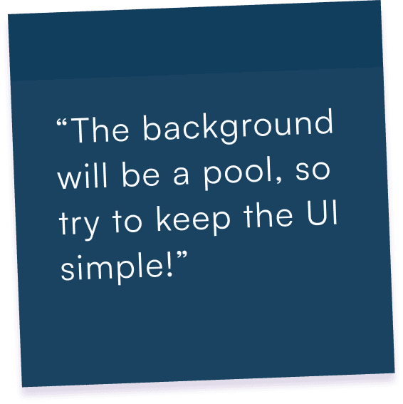 Using a pool’s lane lines and waves in the water as inspiration, the UI stays cohesive with the background but doesn’t blend in.
