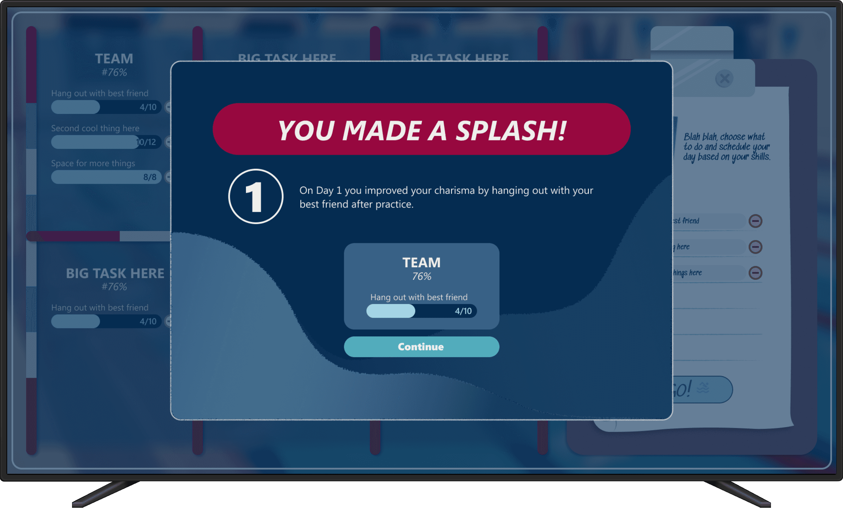 It also doesn’t completely obscure what’s behind it to give the player a sense of environment when selecting tasks.